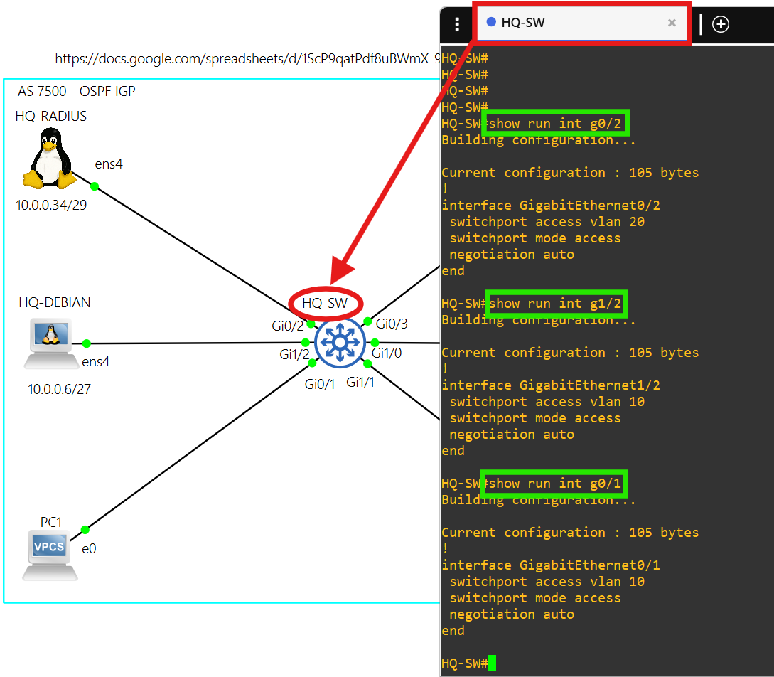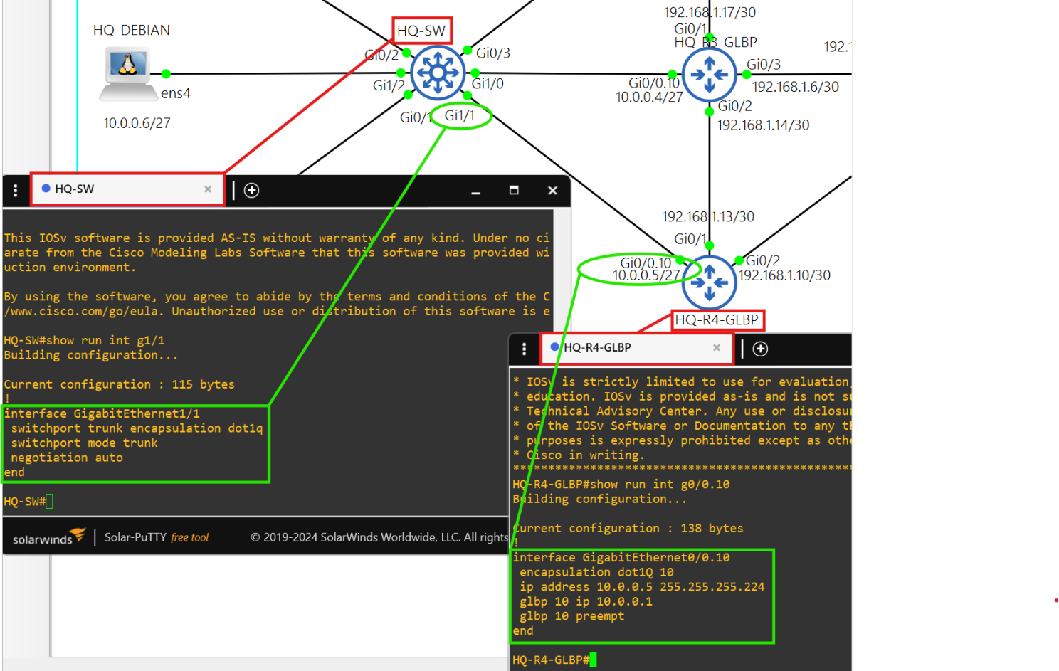 The connection between the GLBP routers and HQ-SW are trunk connections.