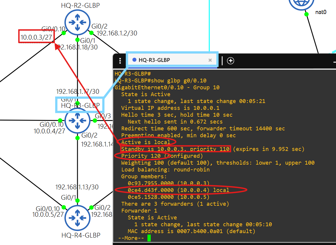 HQ-R3-GLBP is the Active Virtual Gateway and HQ-R2-GLBP is an Active Virtual Forwarder with the next highest priority.